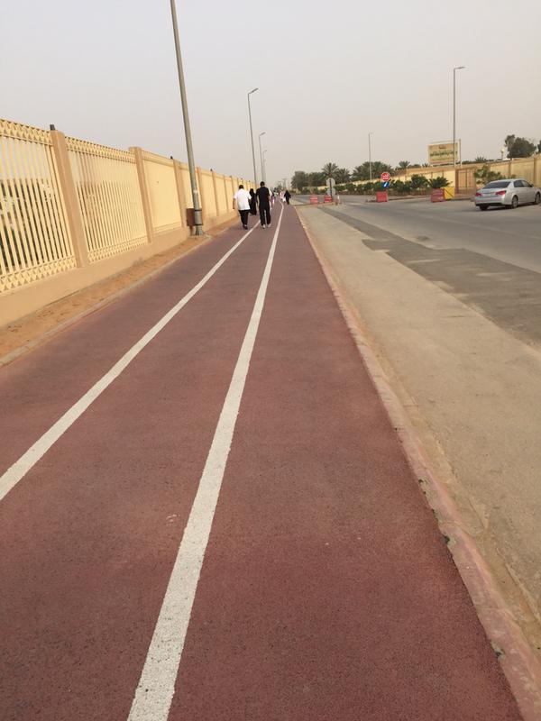 1- تخصيص مكان للمشي خارج سور مشتل تابع لوزارة الزراعة، بحيث يقوم المشاة بالدوران حول المشتل، وتبلغ المسافة تقريبا 1500 متر، وعرض المكان المخصص للمشي حوالي 4 أمتار، وهناك علامات رقمية تخبر المشاة بالمسافة التي قطعوها، وهذه صورة من هذا المكان المخصص للمشي: