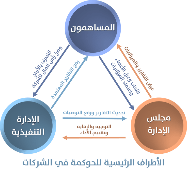 - هيكل الحوكمة التنظيمي: تحديد الأدوار والمسؤوليات لمجلس الإدارة والإدارة العليا واللجان المختصة، مثل لجنة التدقيق ولجنة المكافآت.